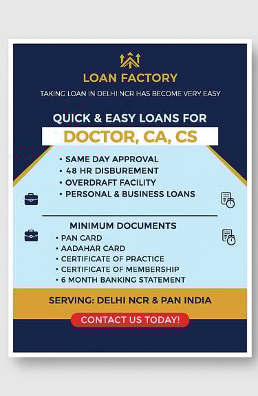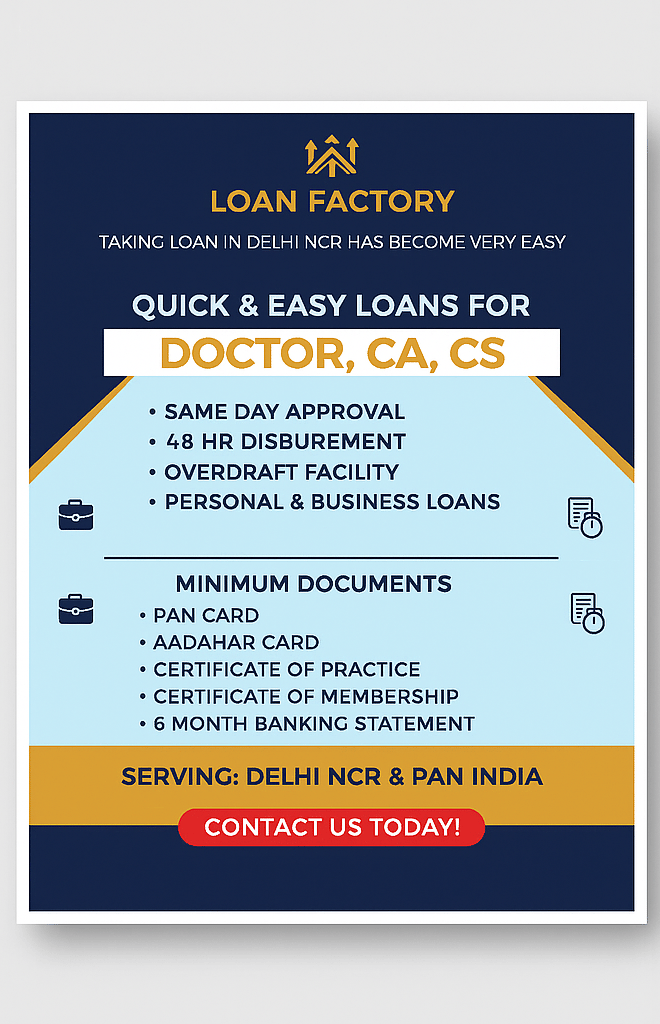 Special loans for Doctors, CAs, and CSs with fast approval.